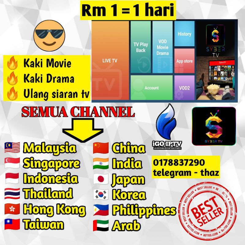 Iptv subscription/channel from malaysia, singapore, indonesia, thailand, taiwan, philipine, hongkong,china sport, movie, news,kids over 350 ++live channels over 10,000 ++ vod & drama vod upload every day channels includes hd & sd quality pindcode reload 31,93,186 & 375day Nowadays, tv box has received the amount of love from people around the world. Its main advantage being that affordable price tag! It supports an android player, mx player, 321 player, and web player. This app is not associated with any tv channels and radio stations.